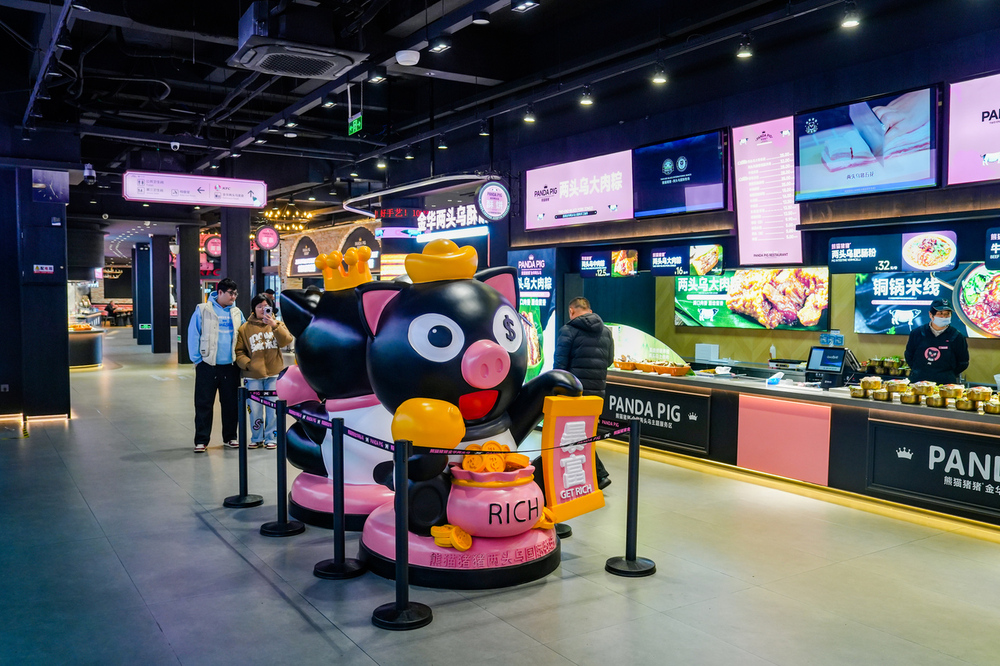 这是全省首个IP主题服务区,由服务区运营方浙江商业集团和金华熊猫猪猪两头乌产业发展有限公司联手打造,后者运营的IP熊猫猪猪两头乌国际牧场位于金华市婺城区长山乡,集数字化养殖观光、科普教育、休闲游乐、亲子趣玩等于一体,去年接待游客116万人次,营收达1.5亿元。1月20日,赶在今年春运启动前,服务区完成所有店铺的全面改造。