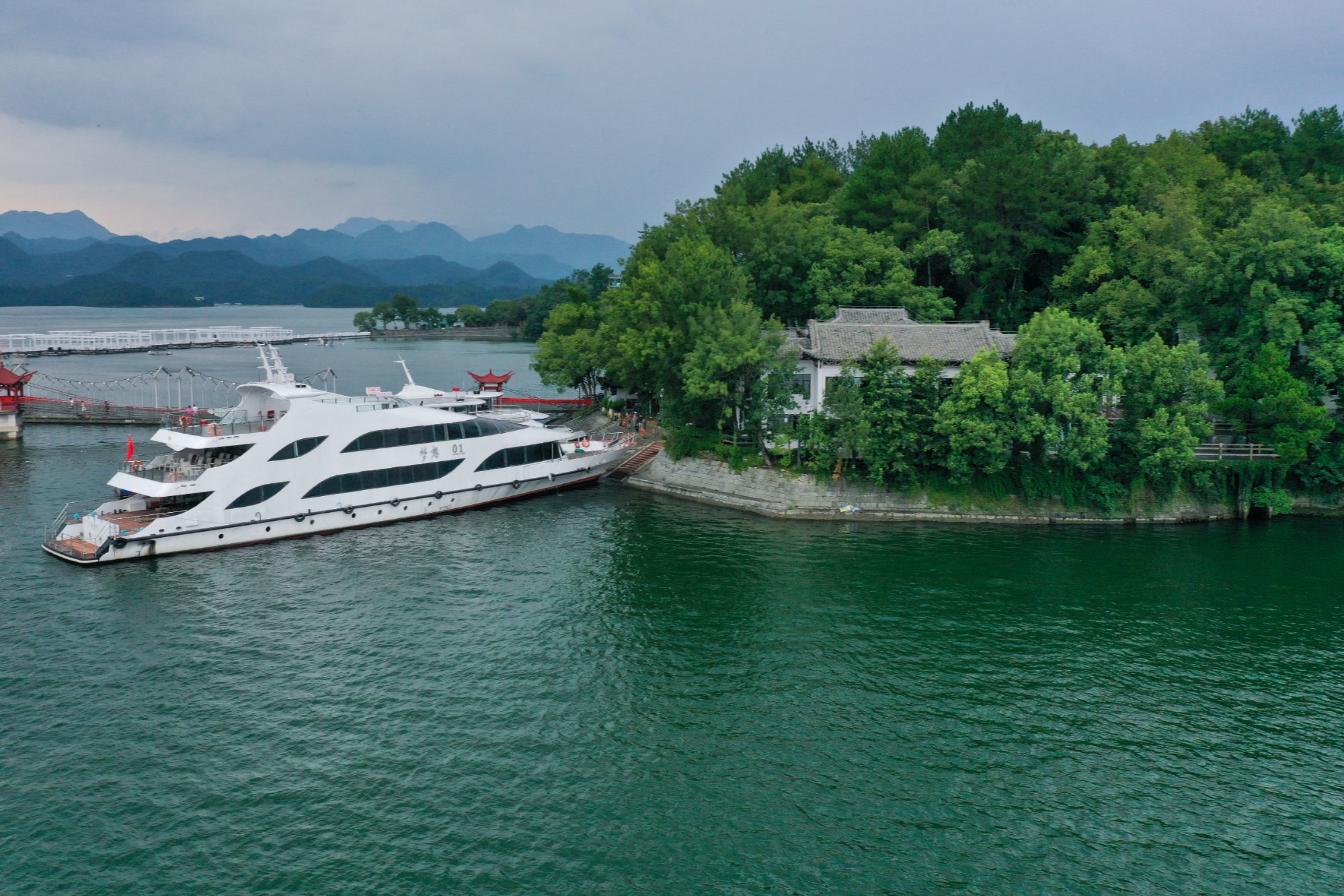 千岛湖游艇停靠在小岛上(淳安县委宣传部供图)