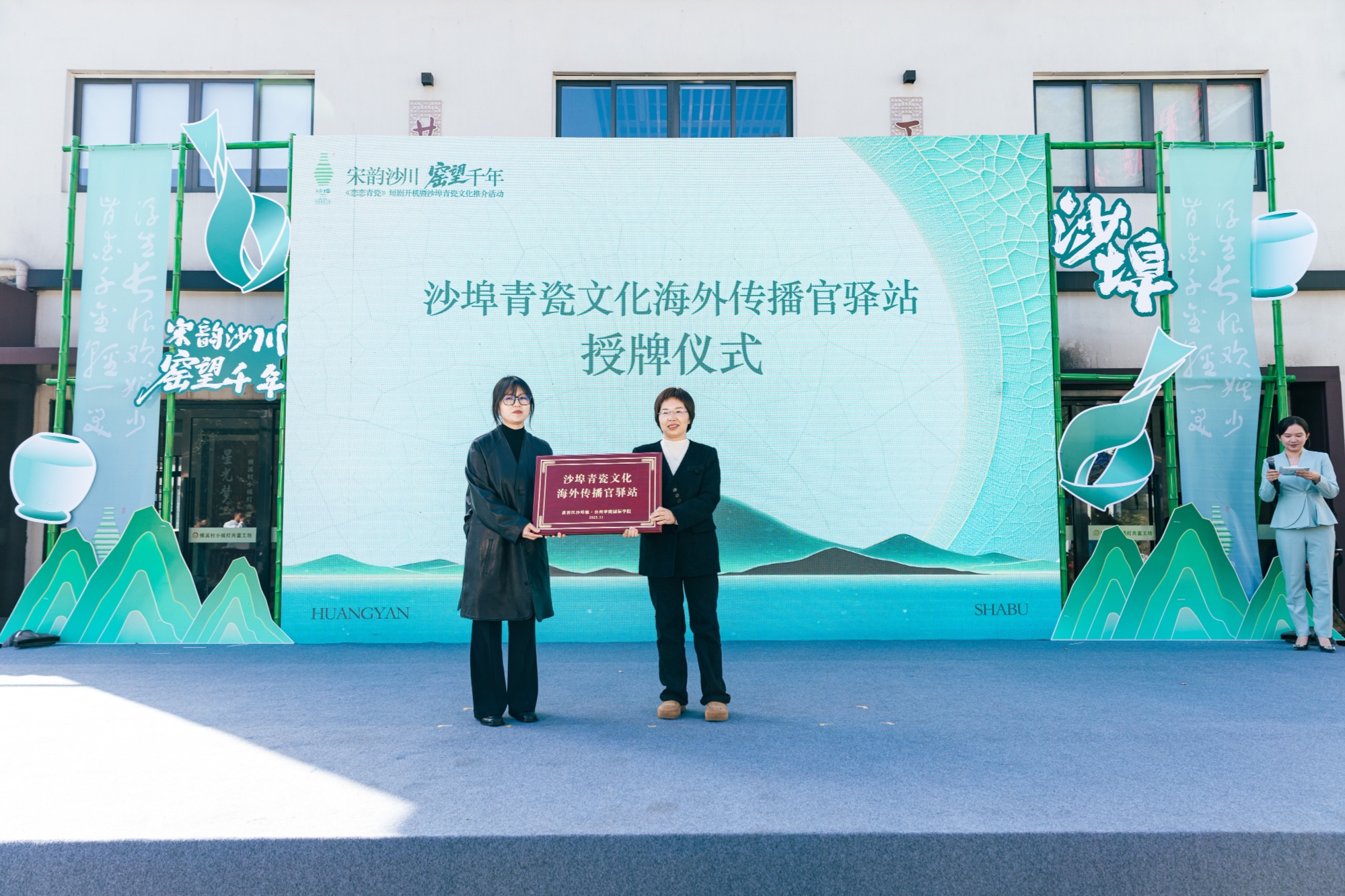 活动现场,沙埠镇人民政府与浙江星风尚影视公司签订了《沙埠青瓷文化出海协议》,并向台州学院国际学院进行了青瓷文化海外传播官驿站的授牌,展示了沙埠青瓷文化传播的优秀作品等内容。