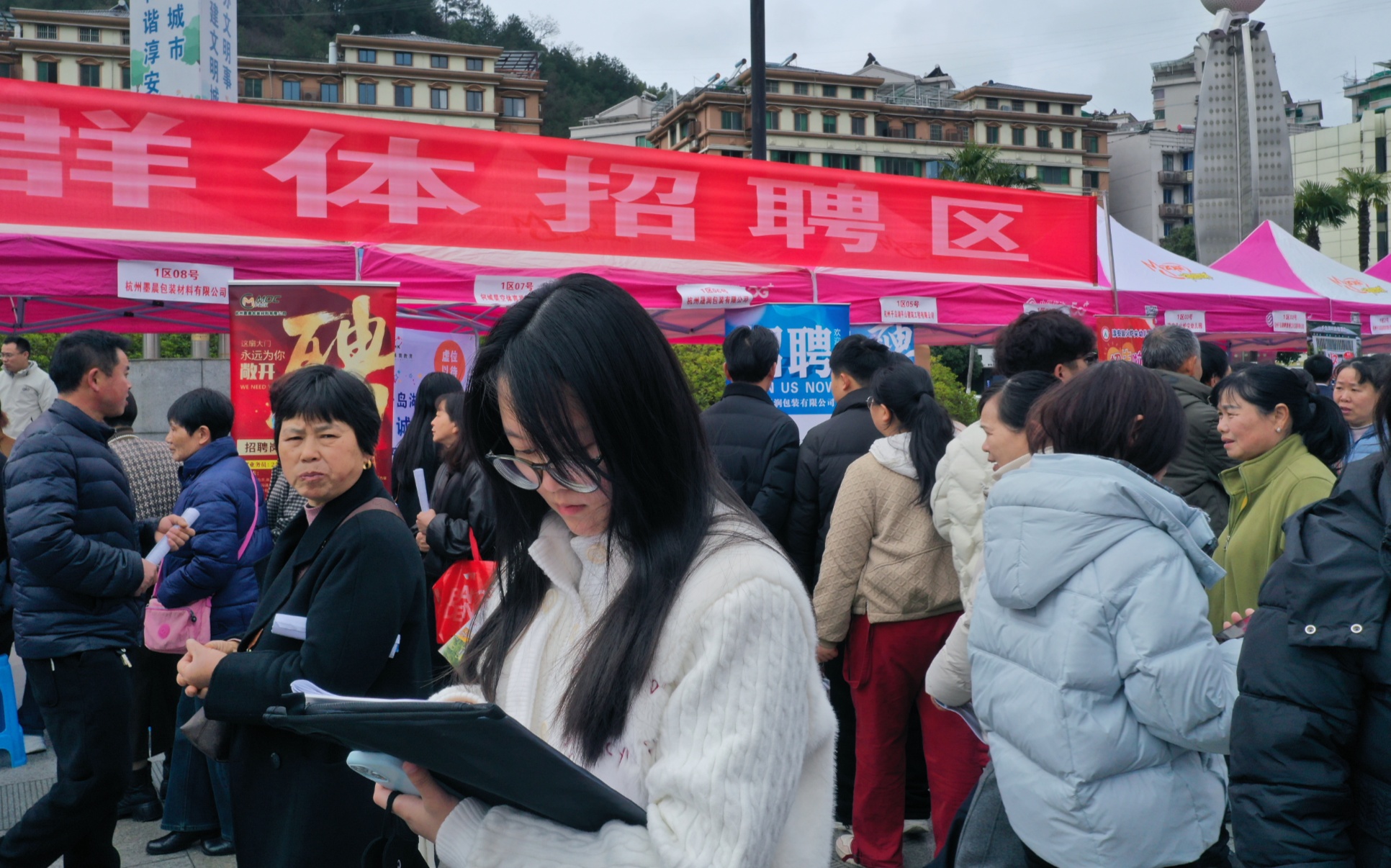 求职者正在查看岗位信息材料(淳安县委宣传部供图)