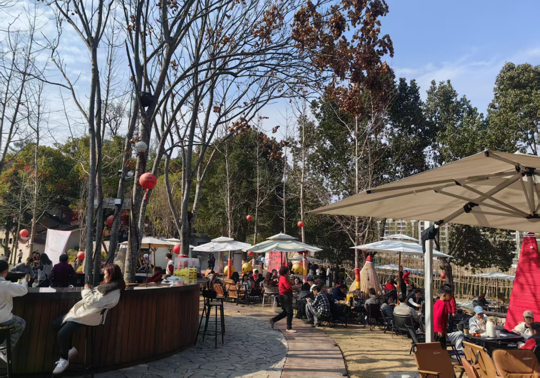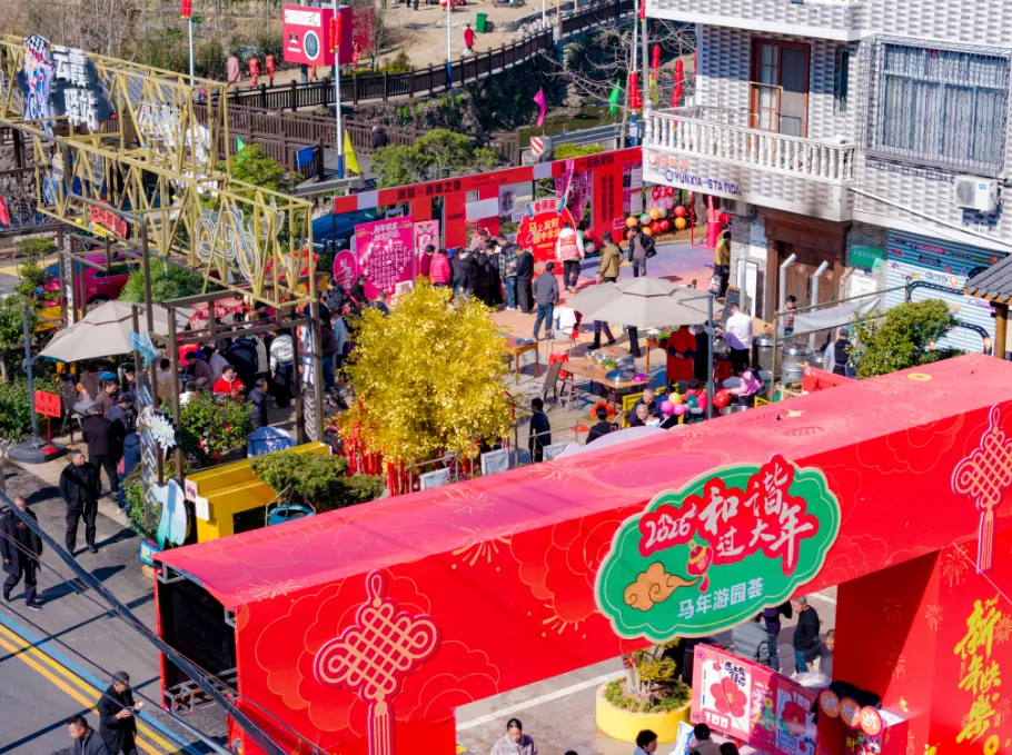 在上张乡和谐村,马年游园荟吸引游客慕名而来。“古建+咖啡”“山水+休闲”的云霞咖啡驿站成为网红打卡地。“以前只有杨梅季有游客,现在村里有了营地、驿站,客房都住满了。”民宿主王路桥见证了变化。