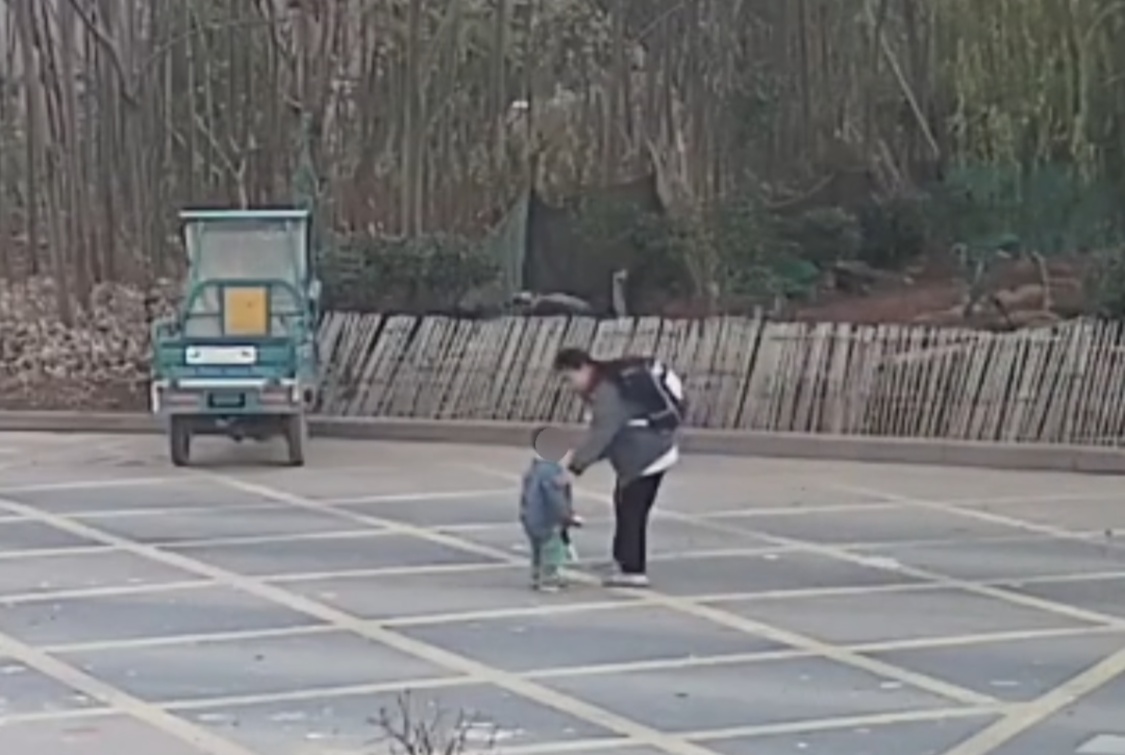 韦倩将小男孩带至安全地段(央广网发 金东区委宣传部供图)