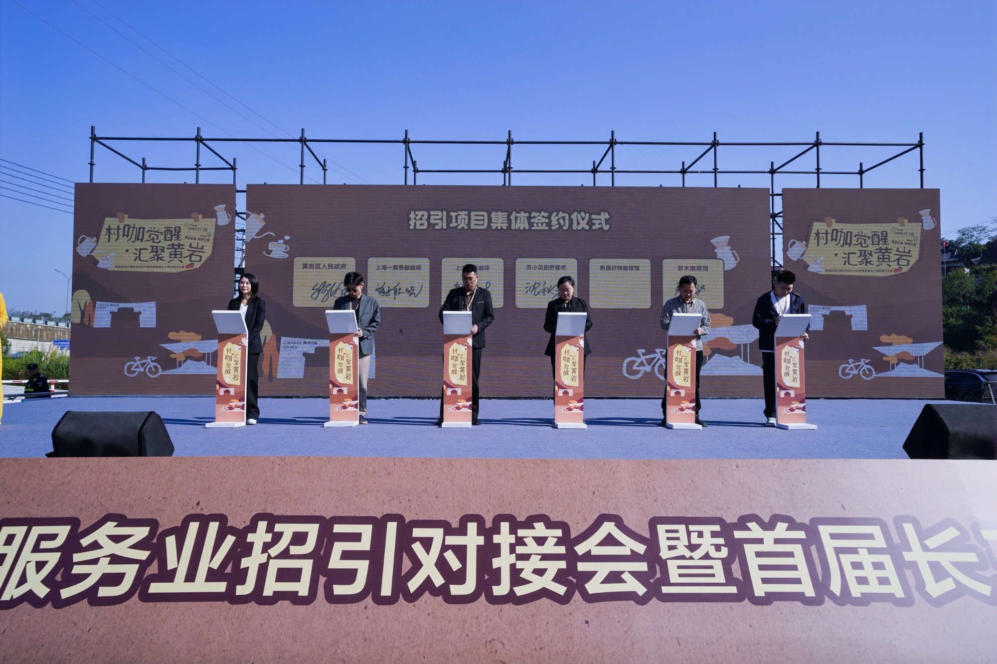11月15日,黄岩区现代服务业招引对接会暨首届长三角村咖文化集开幕式在黄岩石窟·郊野公园举行。自11月14日主题市集率先迎客起,这场以“村咖觉醒·汇聚黄岩”为核心的活动正式拉开帷幕,将持续至11月17日。活动以“咖啡+”为创新纽带,深度串联现代服务业招商与文旅体验场景,为区域产业协作、城乡资源融合搭建起高效对接平台。