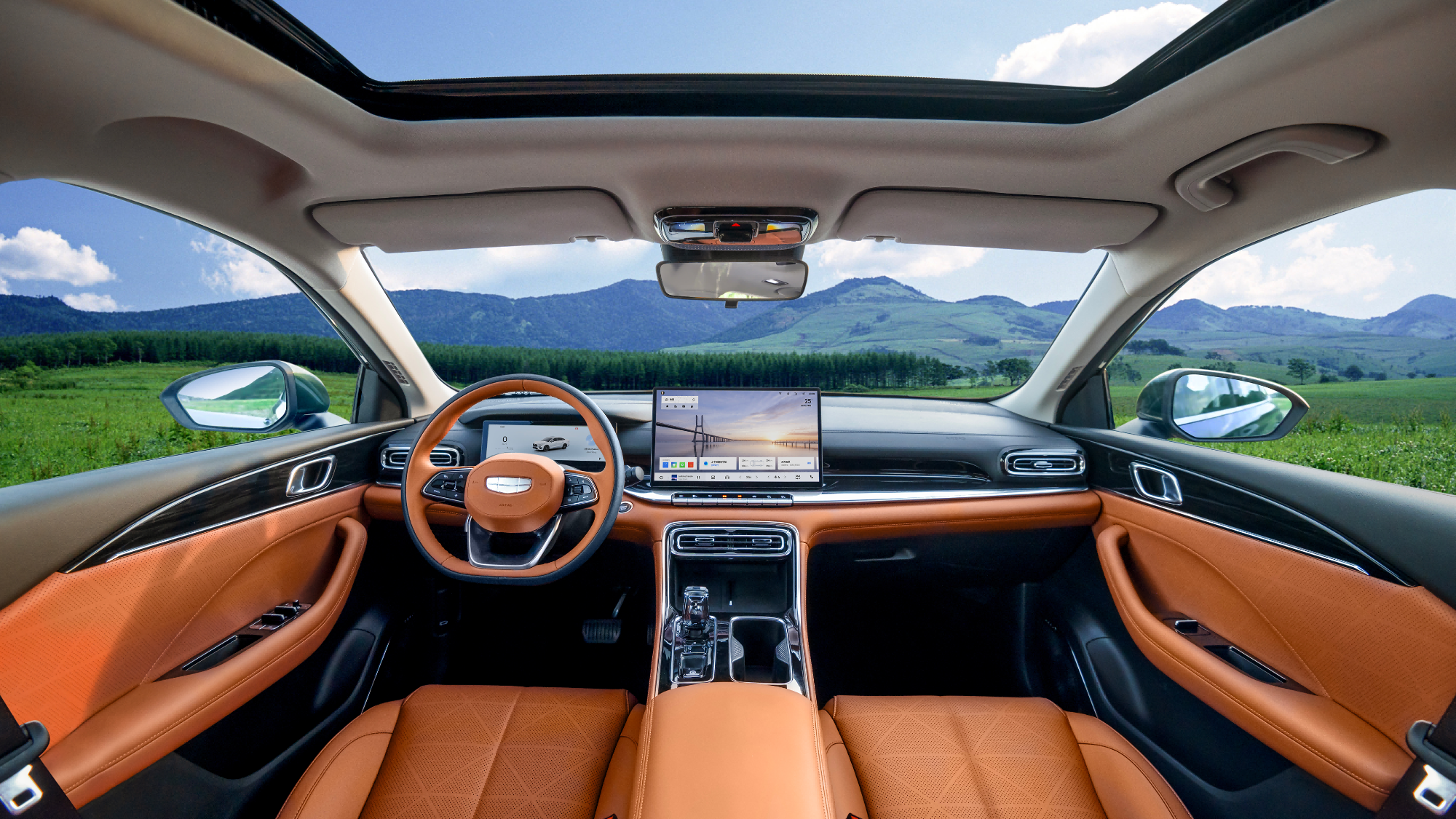 颜值方面,第5代帝豪前脸搭载12根镀铬纵向直瀑立柱,设计灵感源自“十二时辰”“十二月份”等传统满数意象,寓意“圆满周全”。车身配色从万里山河中汲取灵感,推出千山青、墨岩黑、峰芒银、云纱白、松壑蓝、苍烟灰六款国风色彩,将自然意境融入工业设计。