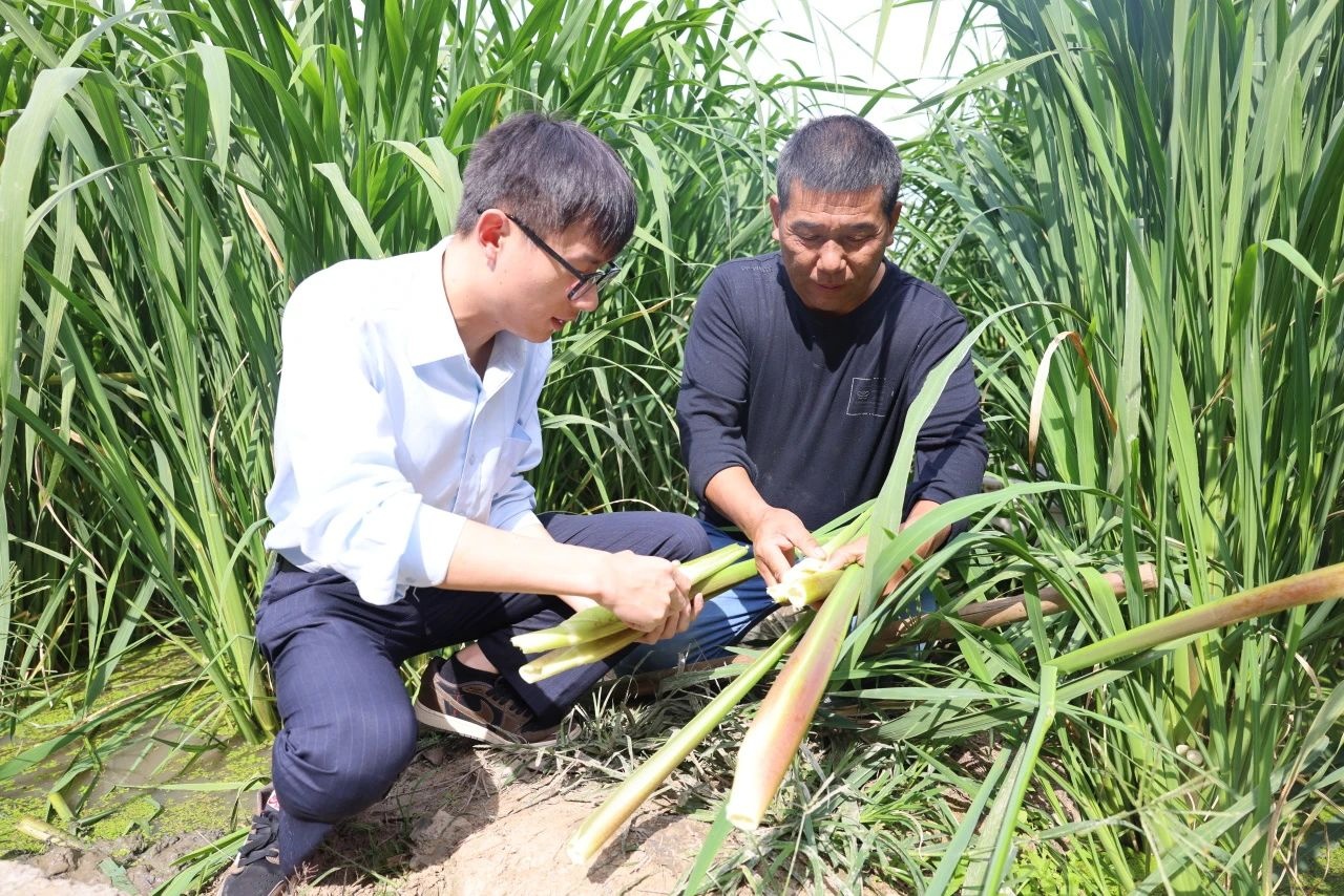 建行浙江衢州分行工作人员了解茭白生长情况(建行浙江省分行供图)