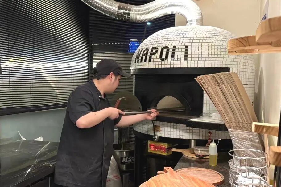 贝蒂夫人的花园意式西餐厅的厨师正在烤制披萨(建行浙江省分行供图)