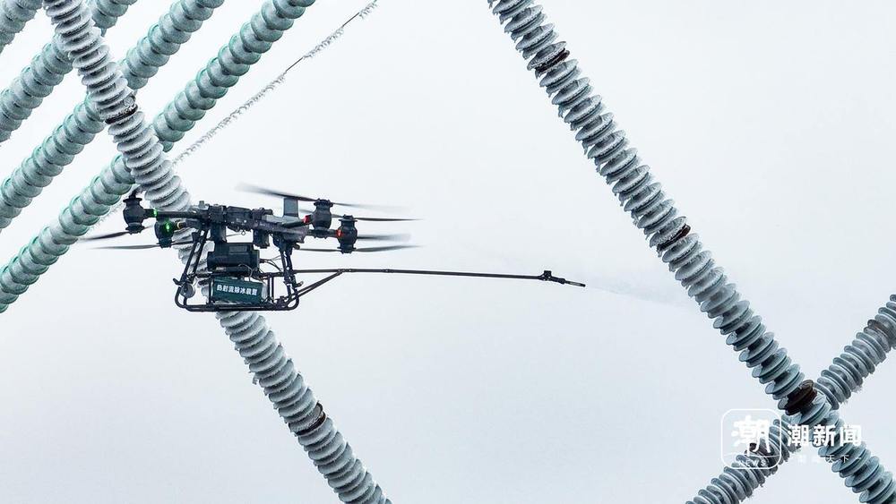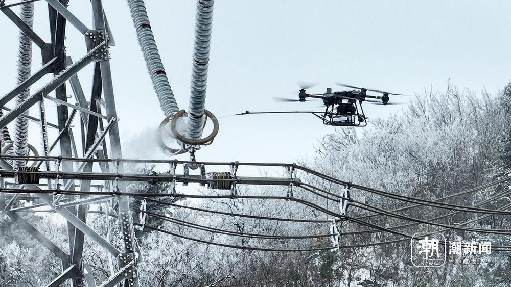 2月1日,在海拔600余米的浙江省杭州市临安区太阳镇鹤岭村,国网杭州供电公司采用无人机热射流带电除冰技术,对±800千伏灵绍线3060号杆塔的绝缘子开展除冰作业。此次成功应用是浙江省内首次将无人机热射流技术用于特高压线路除冰。