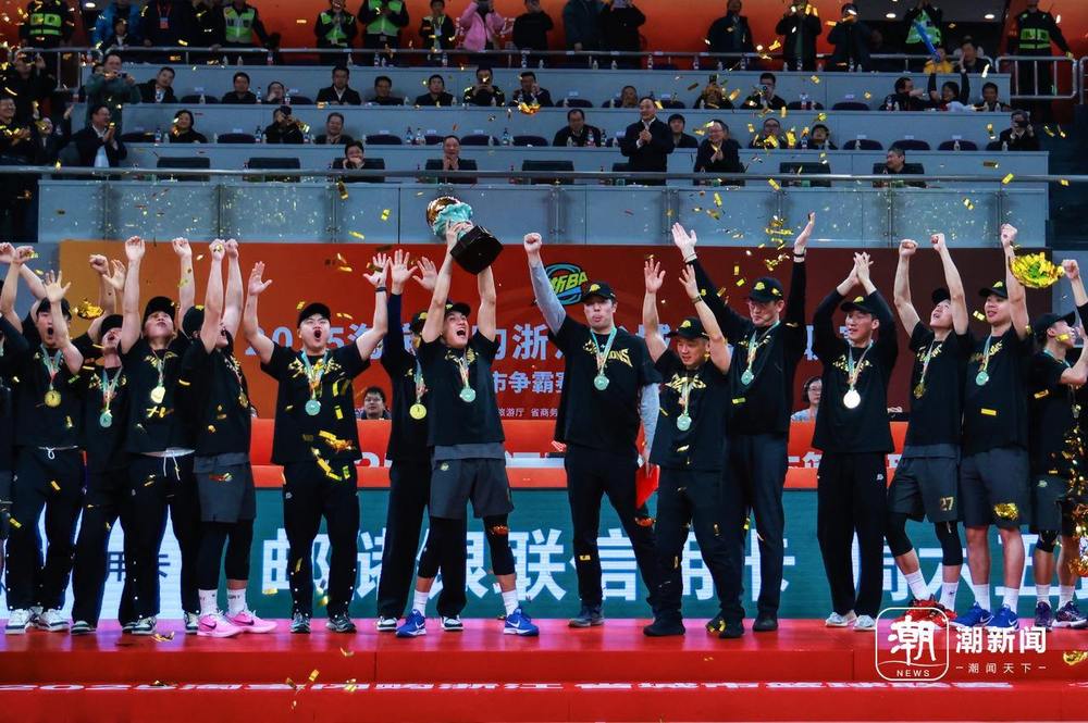 6日晚,2025浙江省城市篮球联赛(“浙BA”)总决赛第四场在浙江省黄龙体育中心体育馆举行。在现场观众的助威声中,杭州队战胜丽水队,捧起首届“浙BA”冠军奖杯。潮新闻 记者 姚颖康 摄