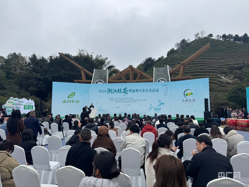2026浙江绿茶暨温州早茶开采活动现场(央广网记者 项楠 摄)