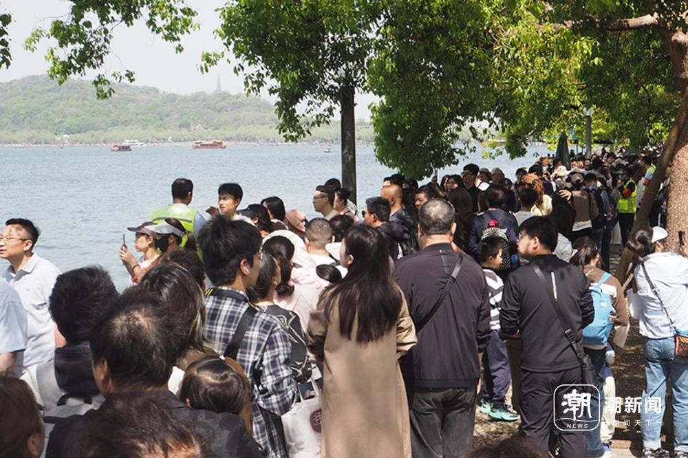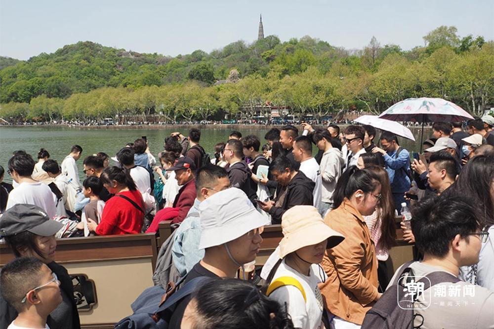 湖滨商圈、断桥一带人头攒动,游客摩肩接踵象。西湖游船人气爆棚,各大码头排起长队,成为假期最火也最“难约”的体验项目。